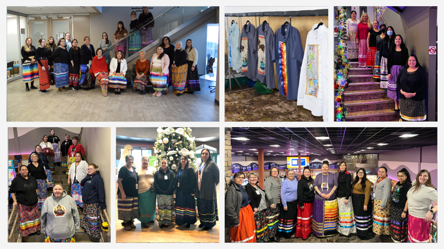 SIGA employees are encouraged to celebrate and honour ribbon skirt day every year by wearing their ribbon skirts and shirts to work.